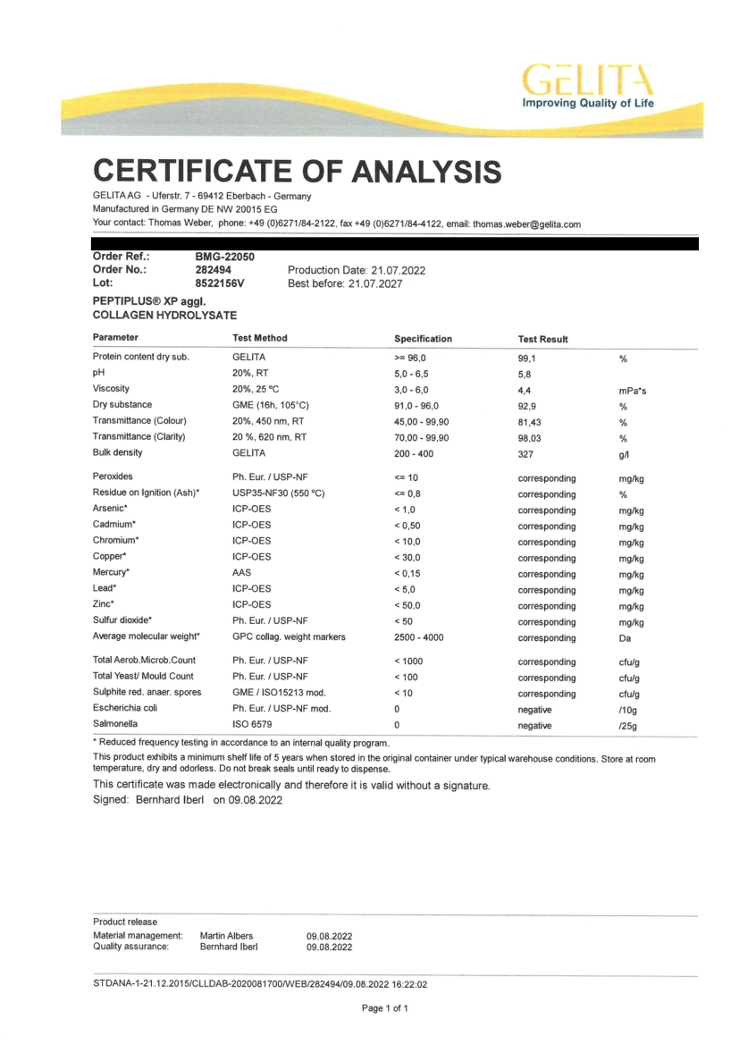 德國水解膠原蛋白粉:原廠檢測報告-8522156V (2023年3月17日)