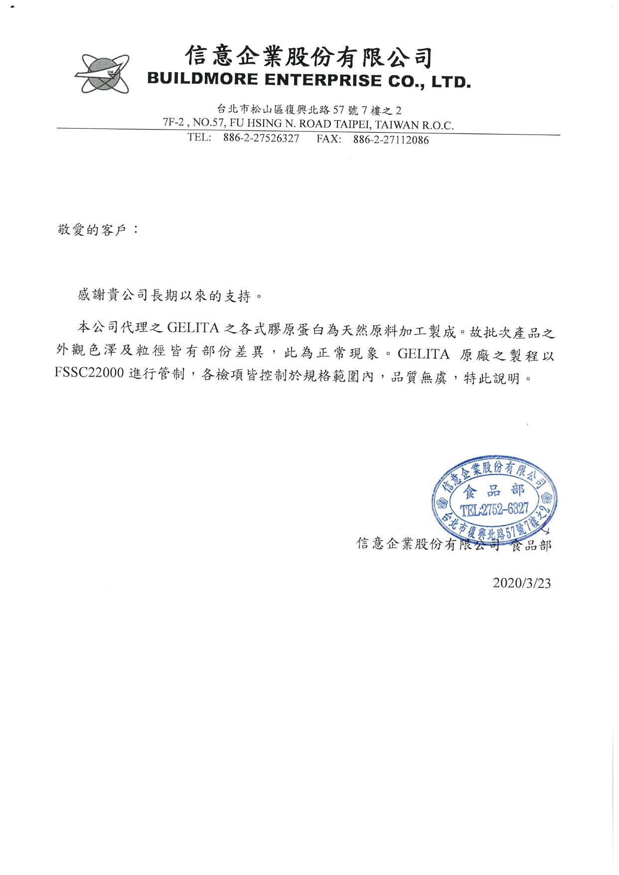 德國水解膠原蛋白粉:顆粒色澤差異聲明書