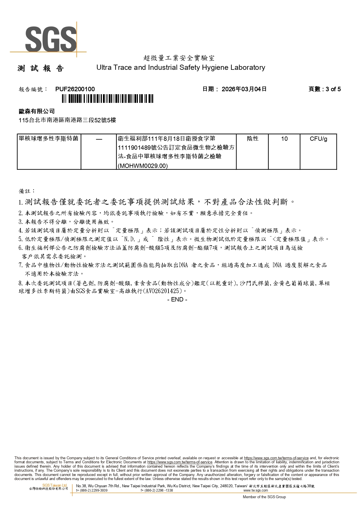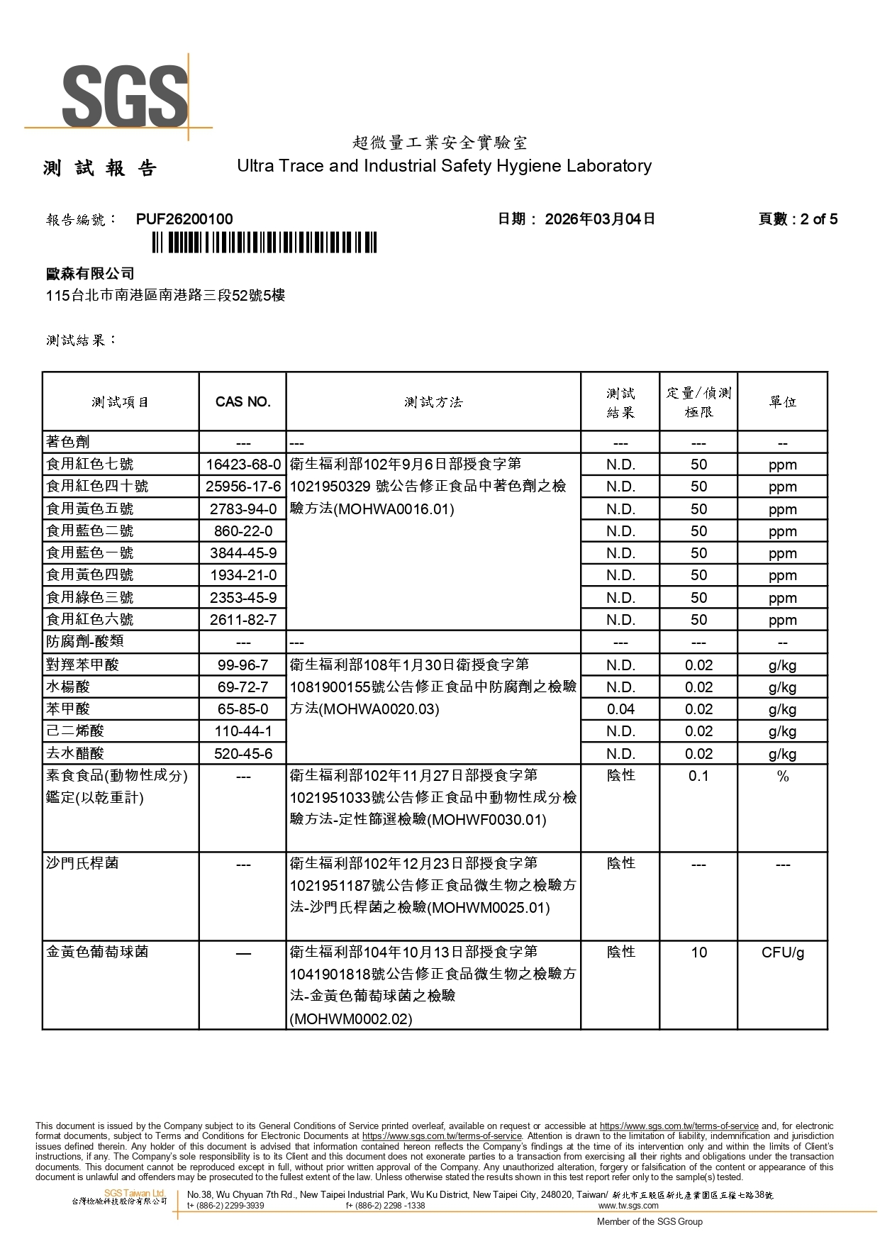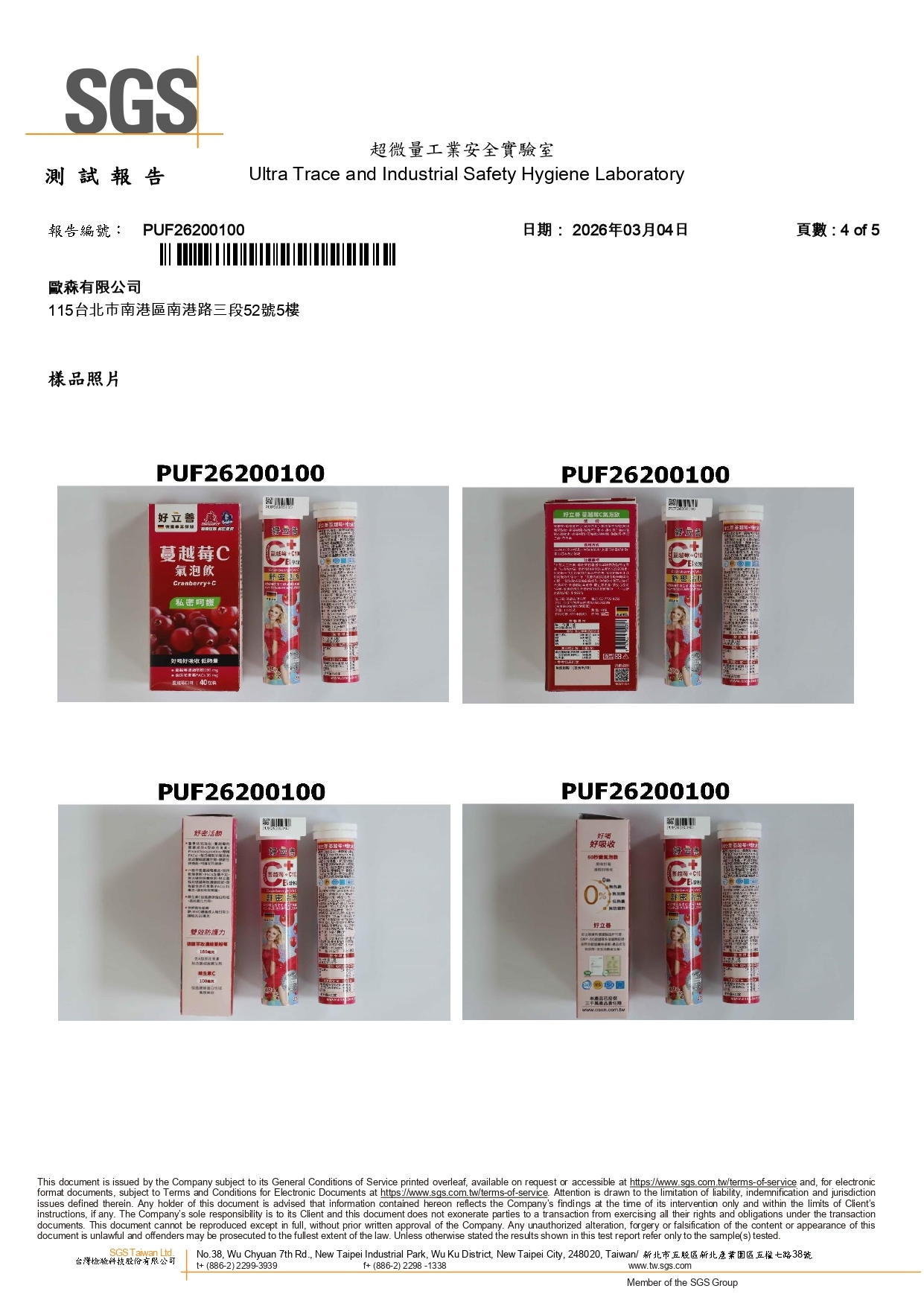 蔓越莓C氣泡飲:SGS檢驗報告(2026年03月04日)