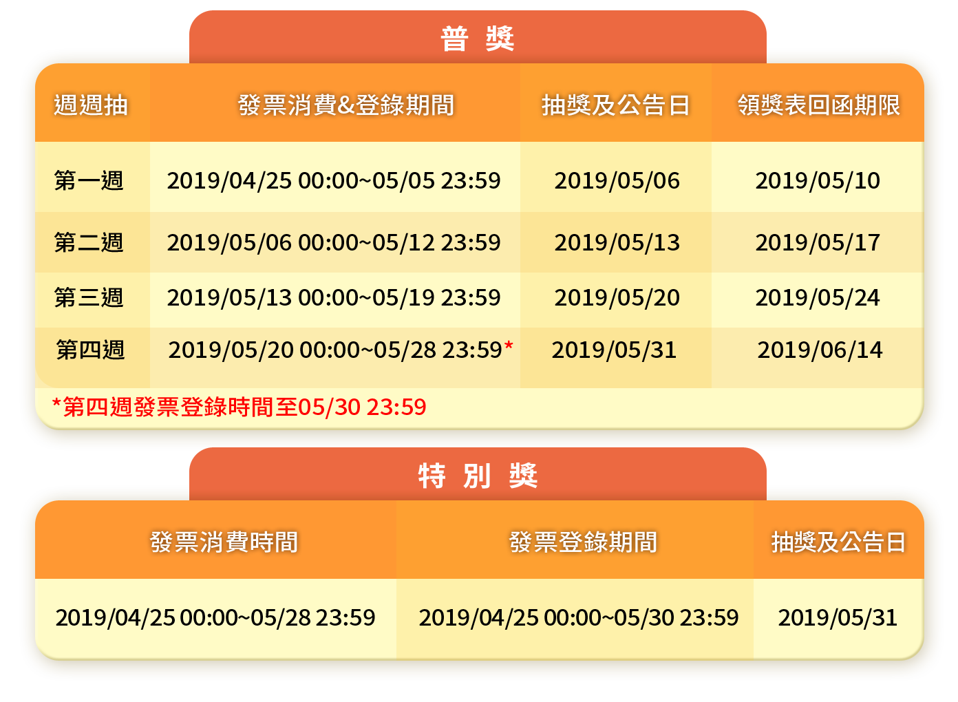 ●活動日期:2019/4/25-2019/5/28 23:59為止( 發票登錄時間至 2019/5/30 23:59 止 )