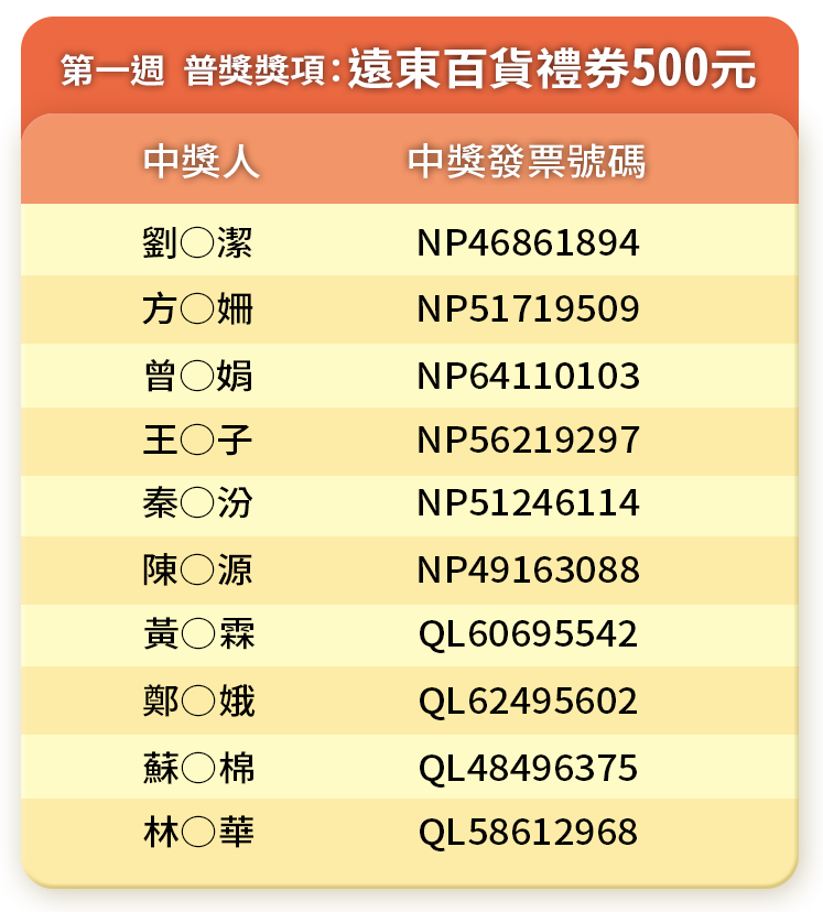 ※每張發票限登錄乙次,每張發票僅有一次中獎資格。該週若未抽中,可繼續參加下週抽獎,越早買,越早登錄,中獎機會越多!