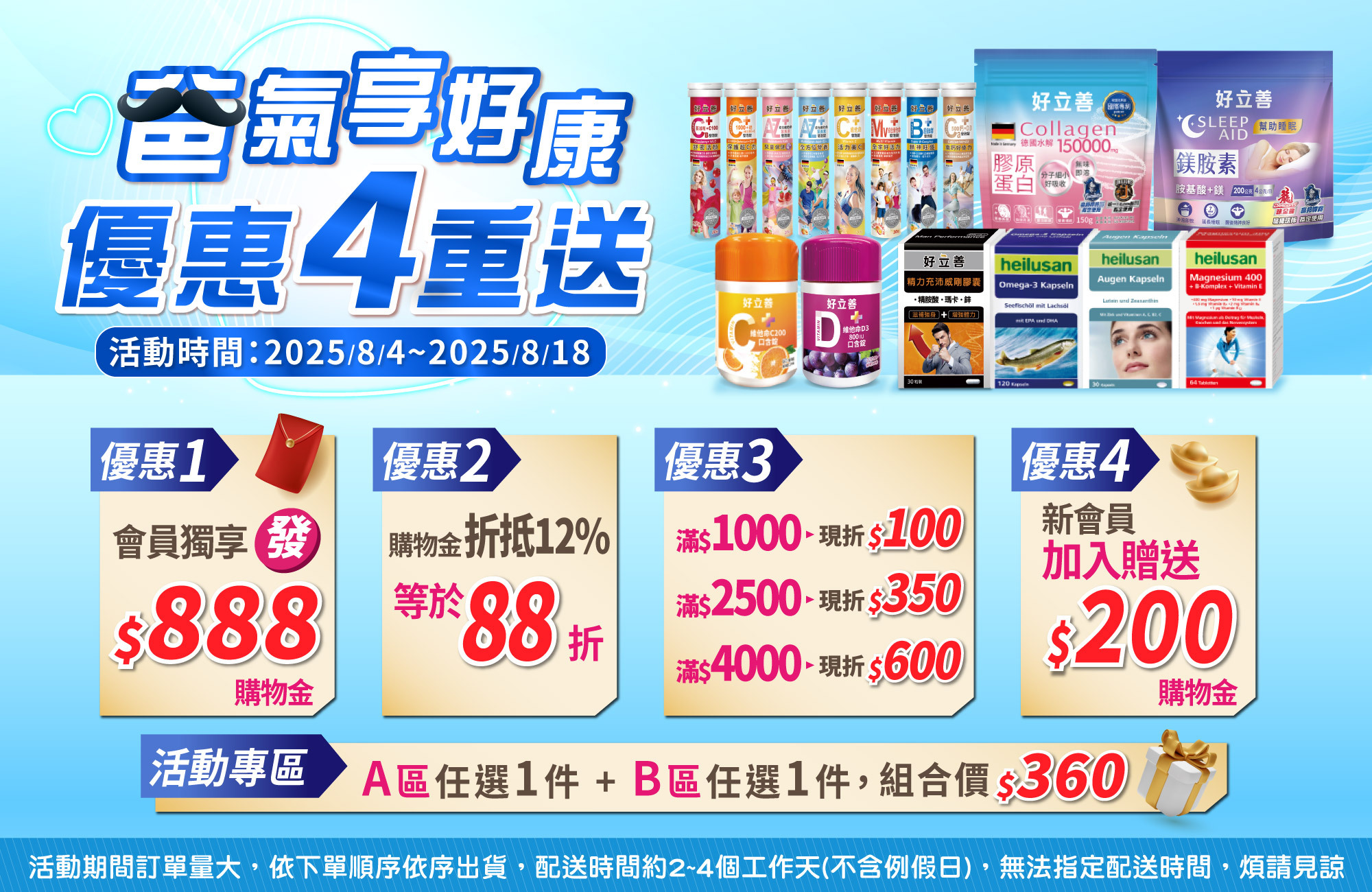 爸氣享好康 好禮4重送 (8/4-8/18)