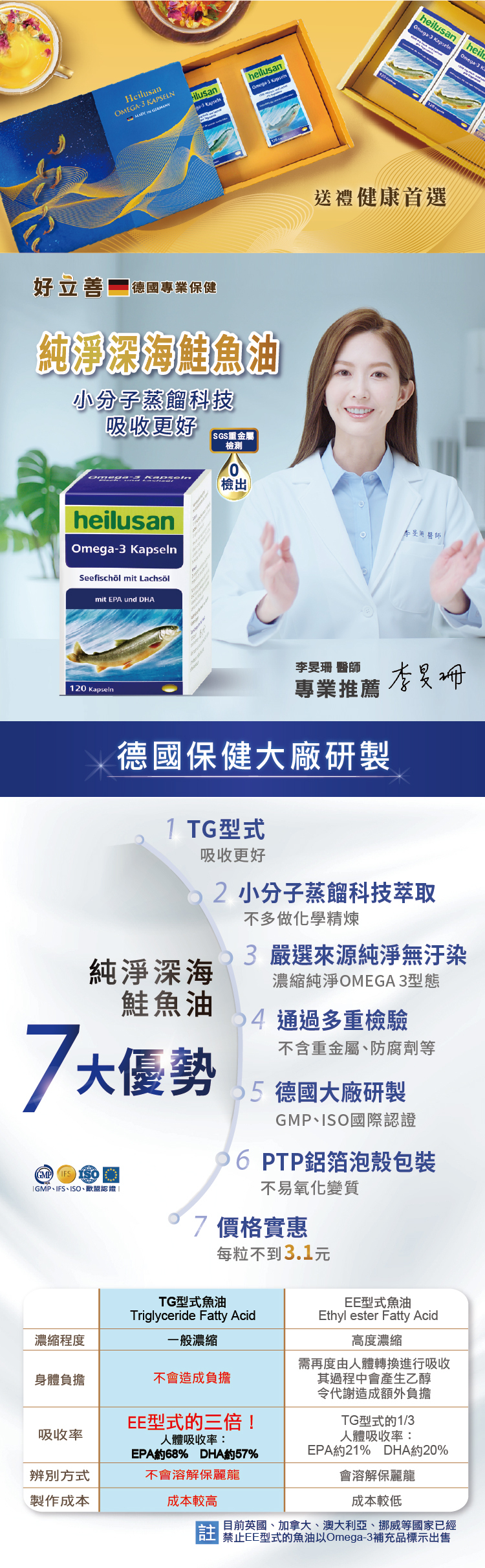 純淨深海鮭魚油 3入禮盒組(120粒/盒) 999元