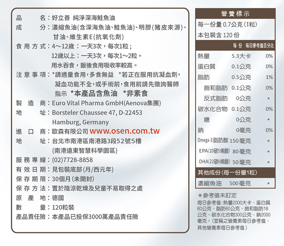 歐森好立善 【德國 好立善】純淨深海鮭魚油 | TG型式最少加工 經濟實惠CP值高